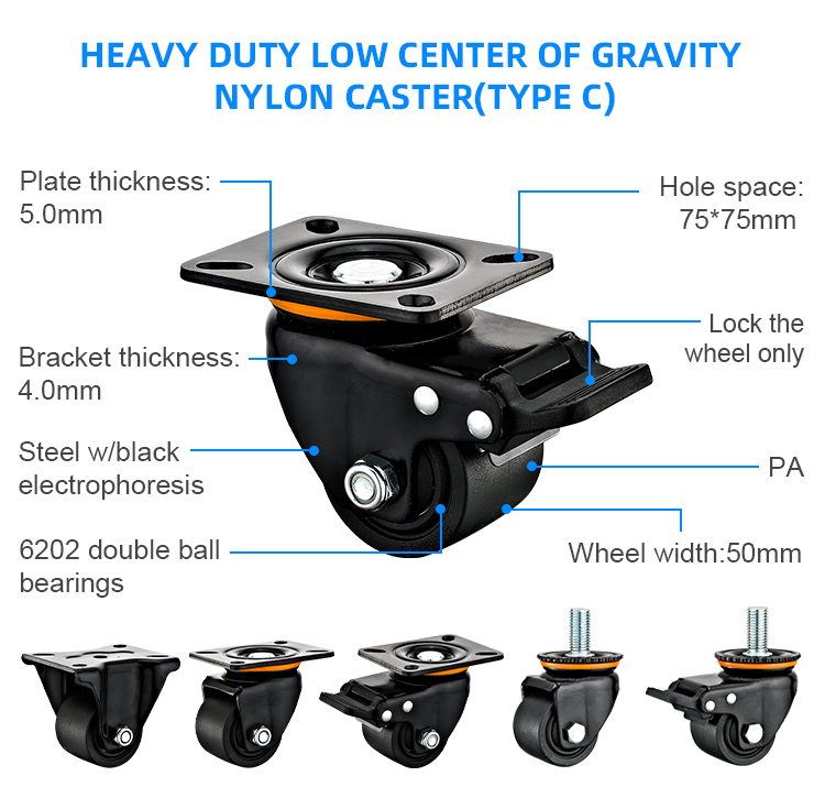 Zinc-plated pressed steel housing with double steel ball raceway in swivel head