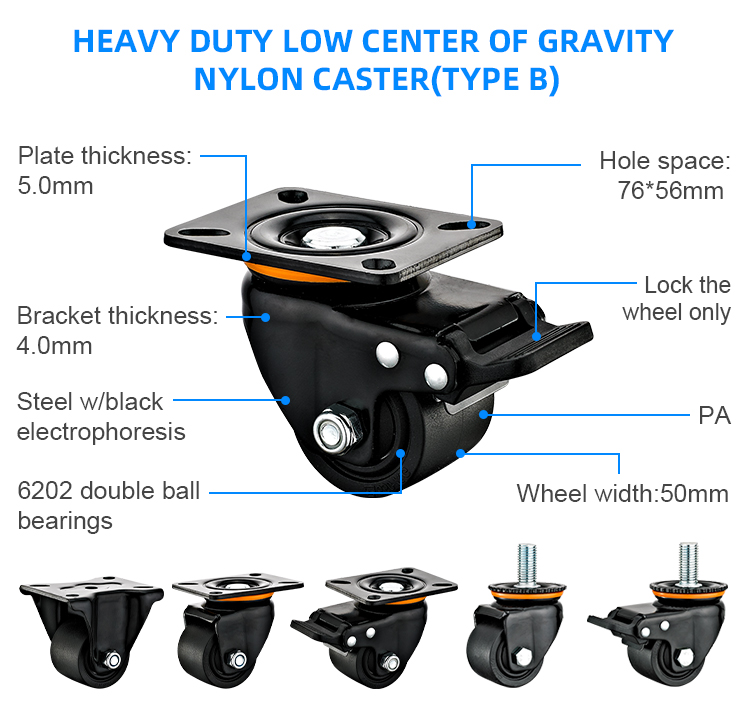 Zinc-plated pressed steel housing with double steel ball raceway in swivel head