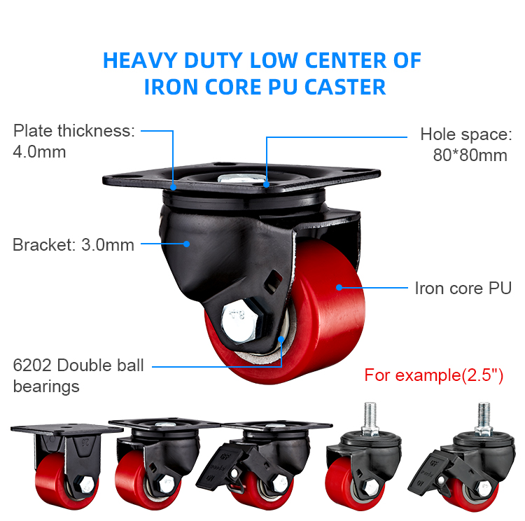 Heavy duty Low center of gravity iron core PU caster