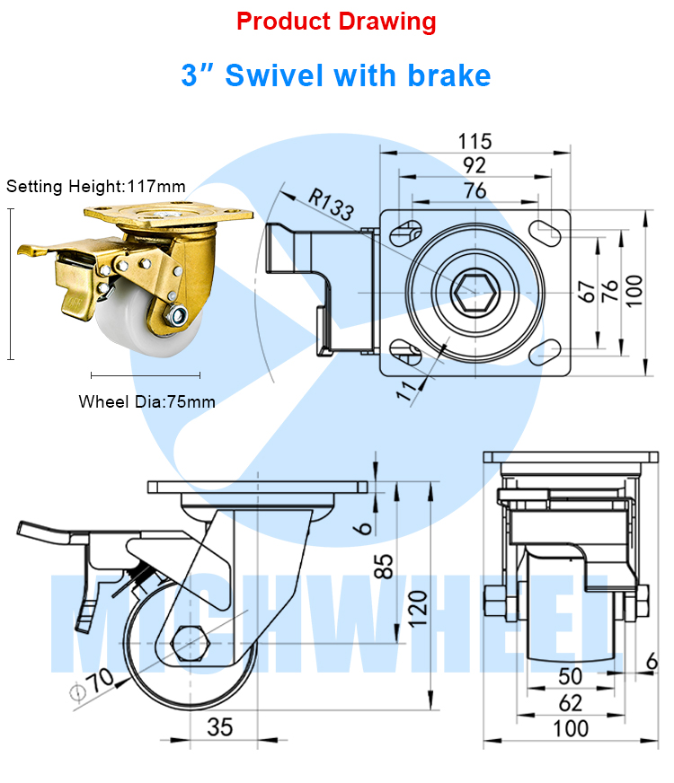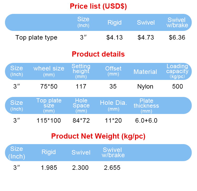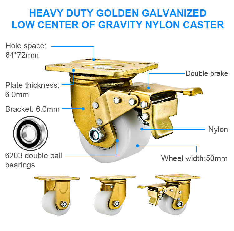 Heavy duty color-plated zinc low center of gravity nylon caster