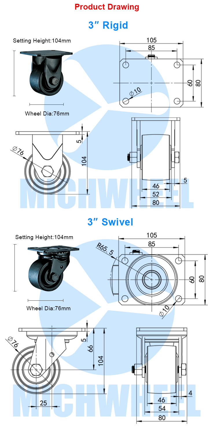 Heavy duty Low center of gravity 220℃ High temp. caster