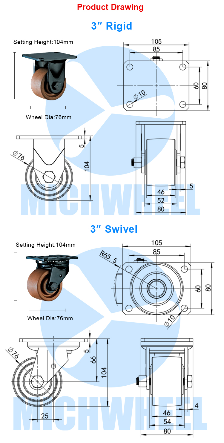 Heavy duty Low center of gravity 280℃ High temp. caster