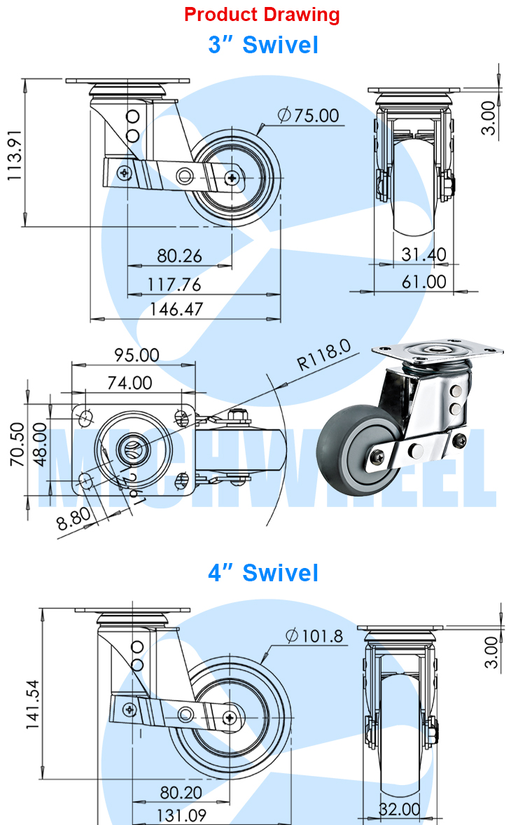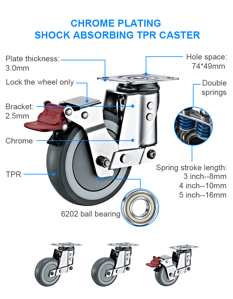 Zinc-plated pressed steel housing with double steel ball raceway in swivel head