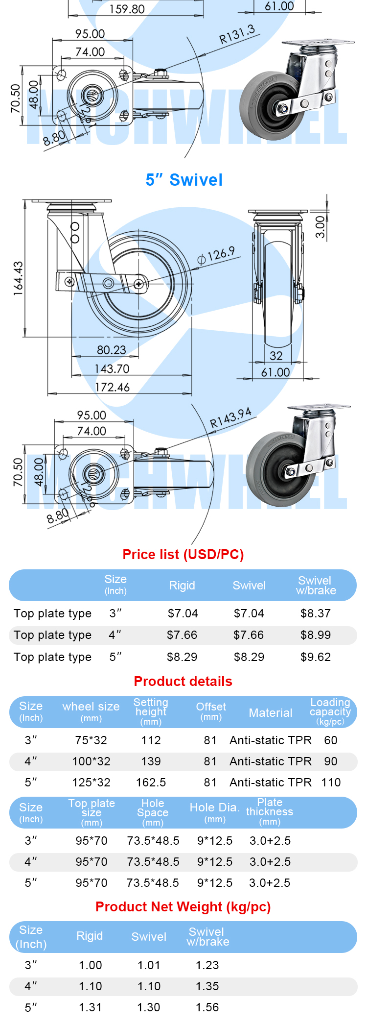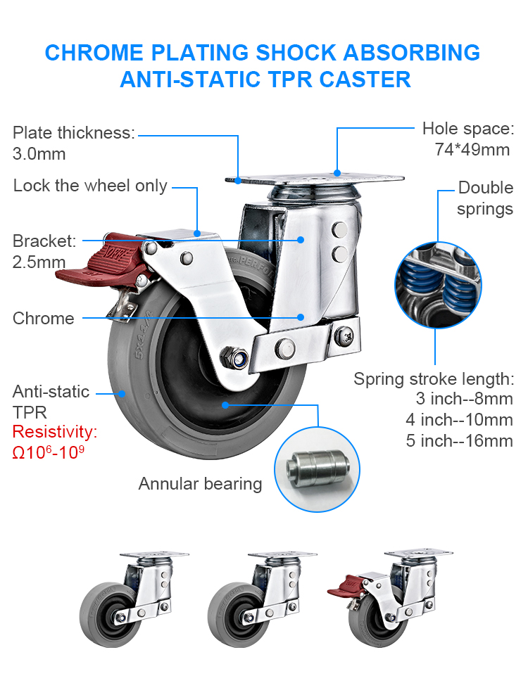 Zinc-plated pressed steel housing with double steel ball raceway in swivel head
