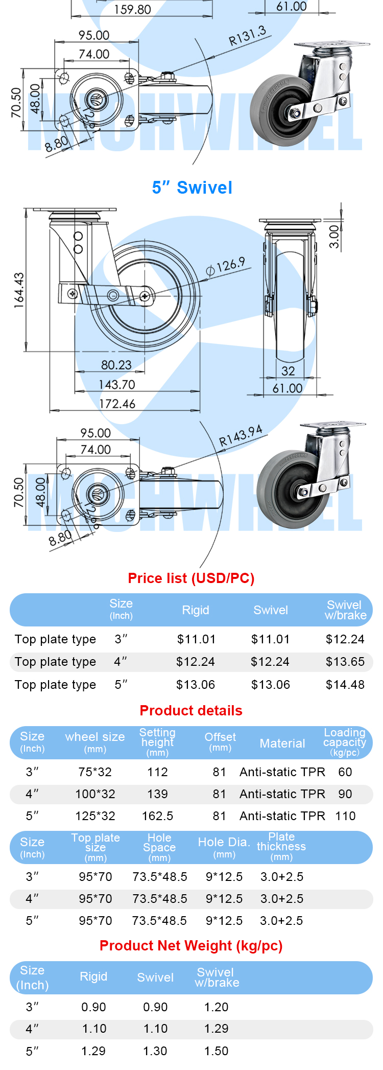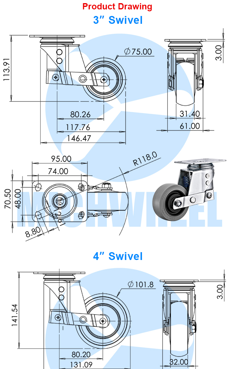Zinc-plated pressed steel housing with double steel ball raceway in swivel head