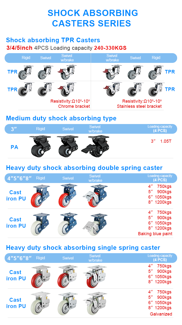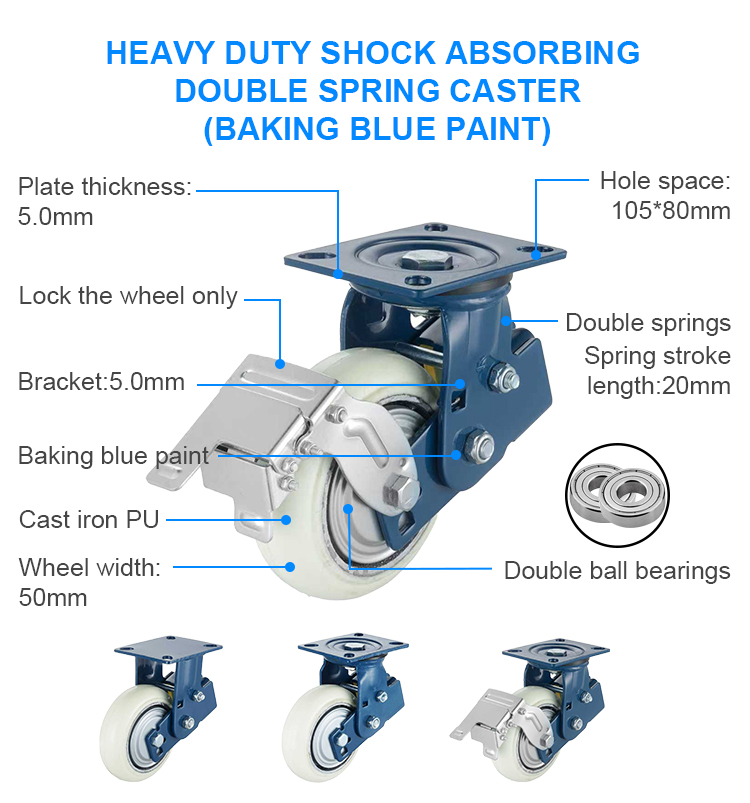 Heavy duty shock absorbing double spring caster