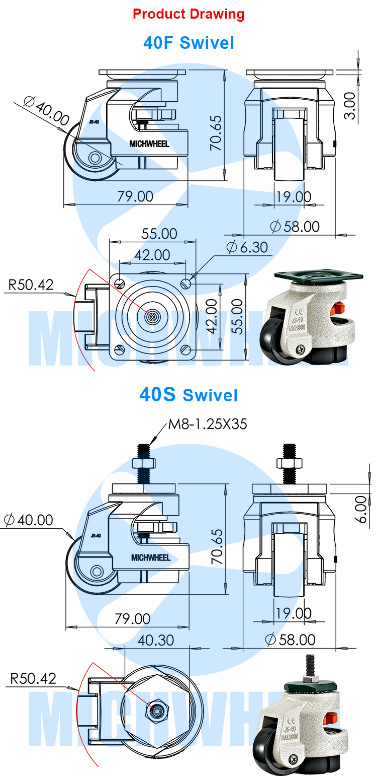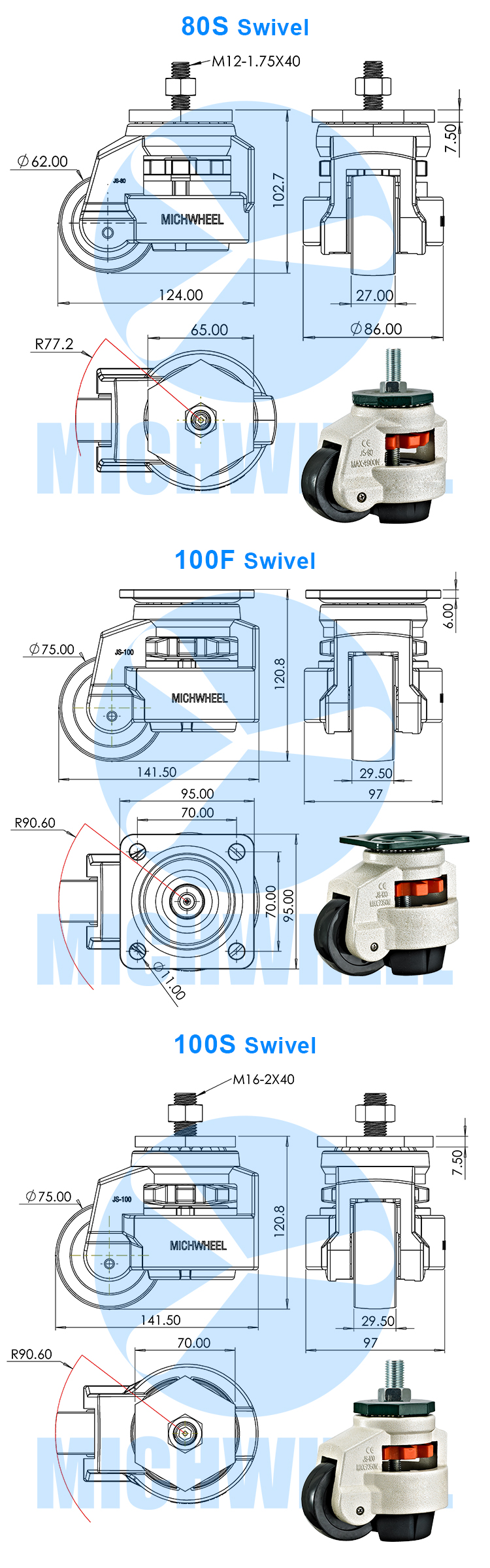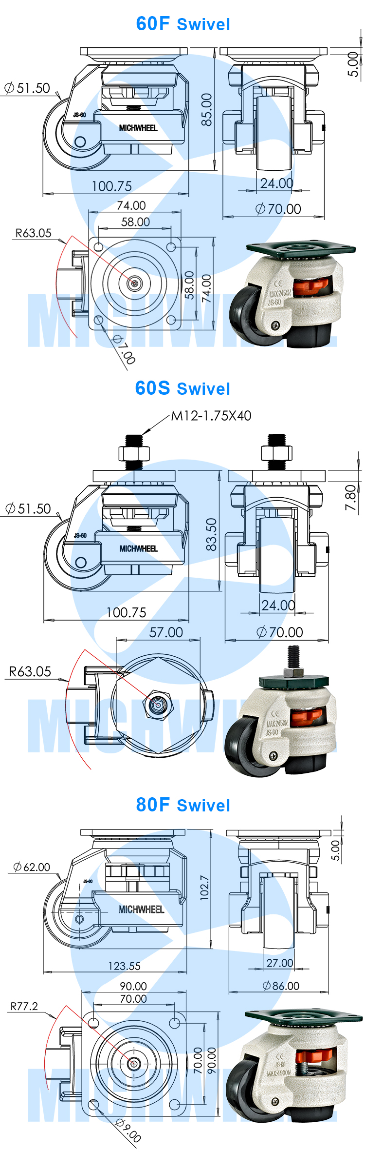 Zinc-plated pressed steel housing with double steel ball raceway in swivel head