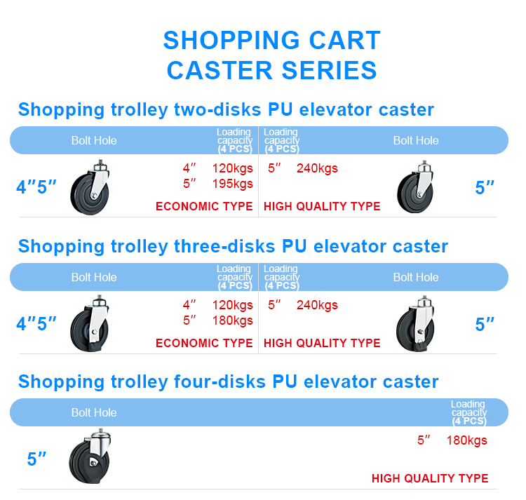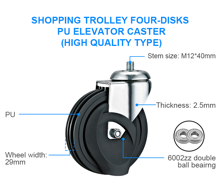 Shopping trolley four-disks PU elevator caster