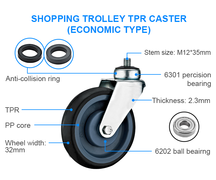 Zinc-plated pressed steel housing with double steel ball raceway in swivel head
