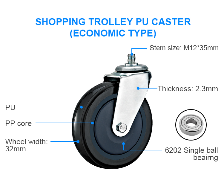 Zinc-plated pressed steel housing with double steel ball raceway in swivel head