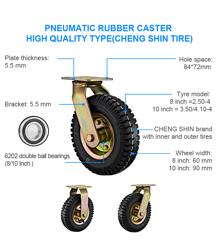 Pneumatic rubber caster high quality type(CHENG SHIN tire)
