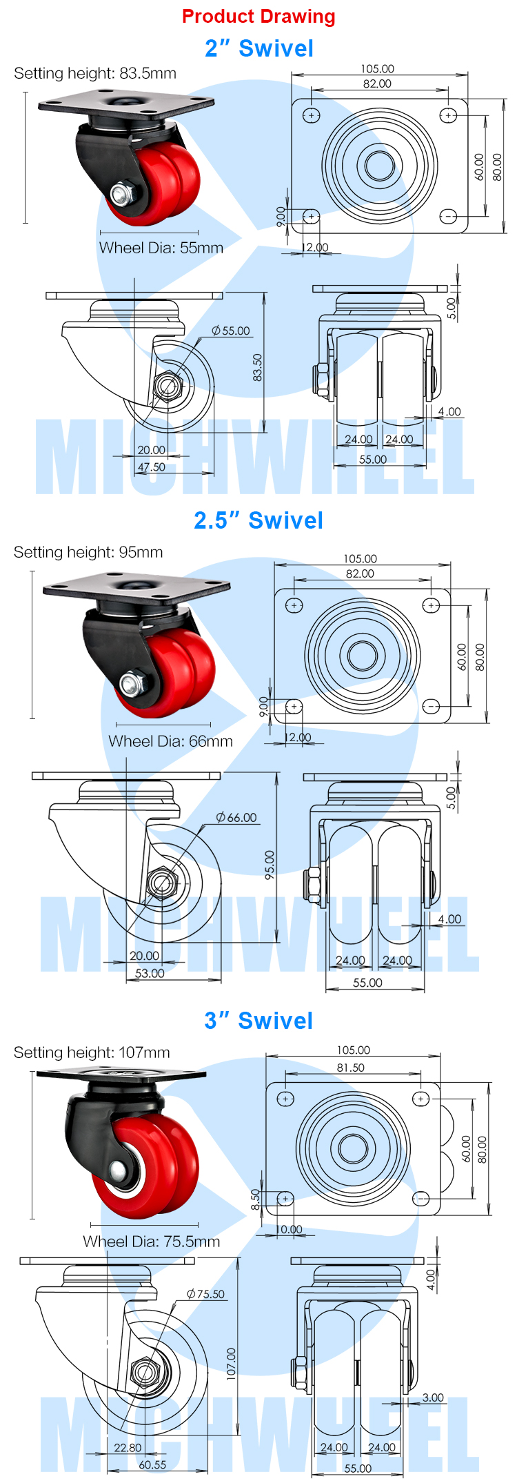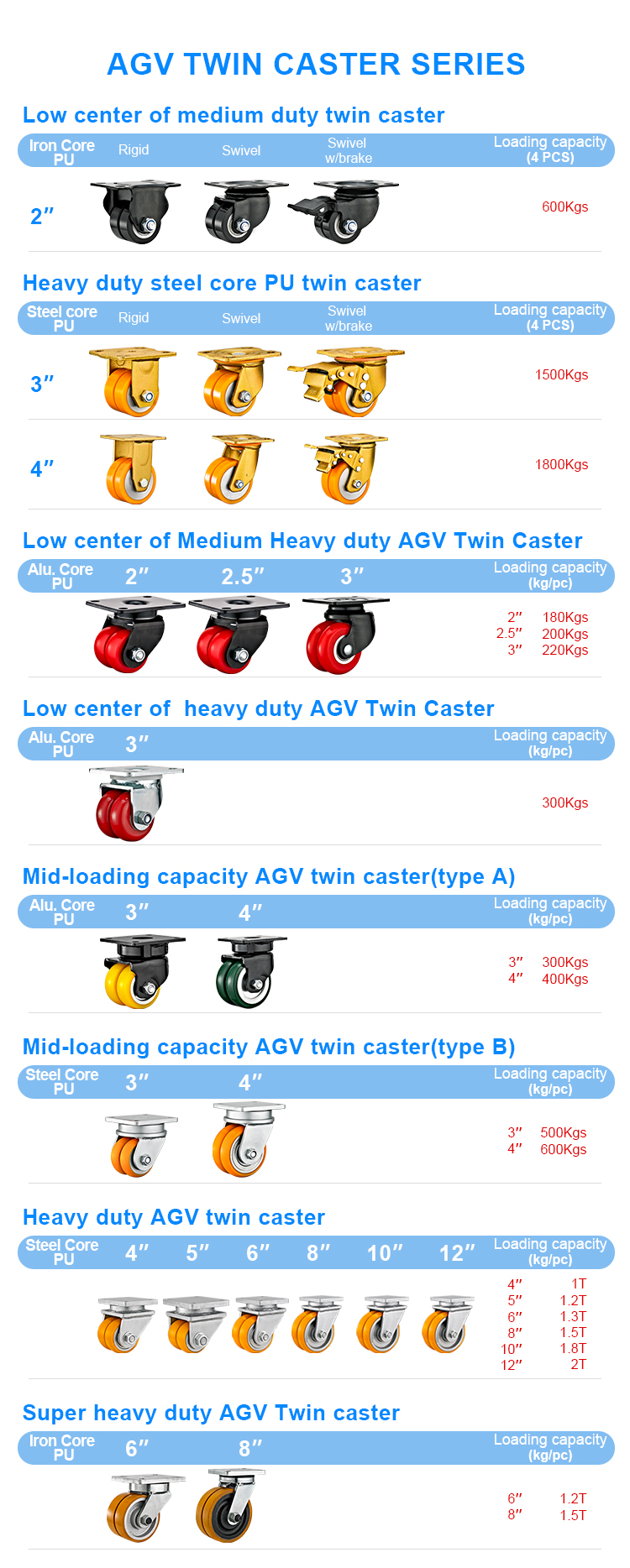 Low center of Medium Heavy duty AGV dual caster