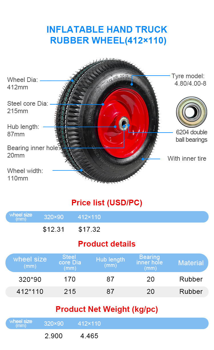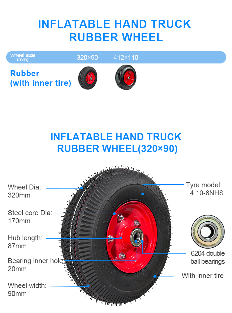 Inflatable hand truck rubber wheel