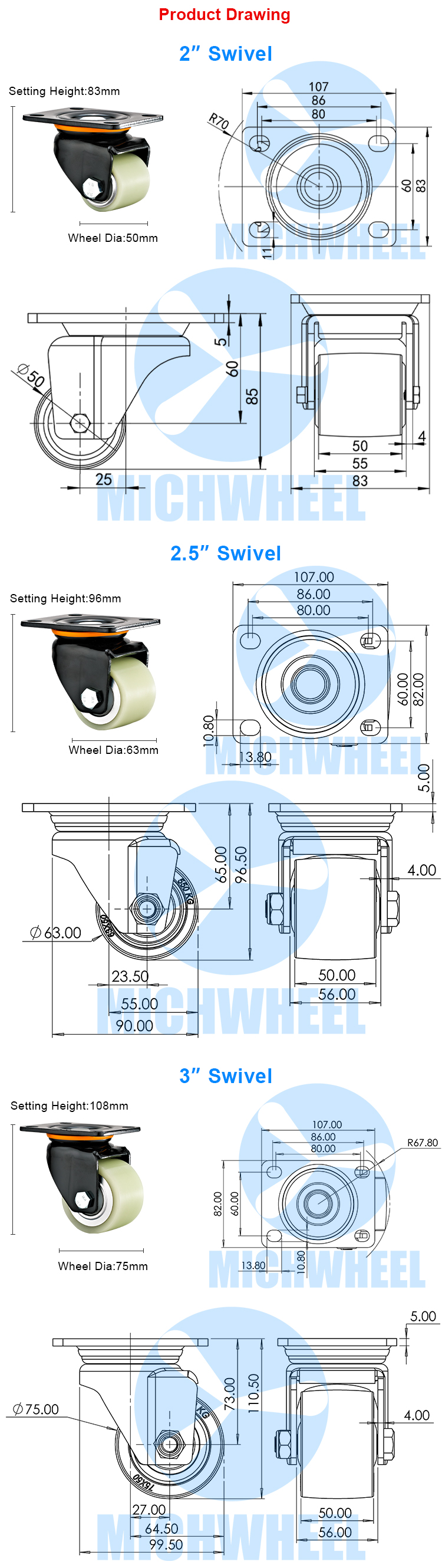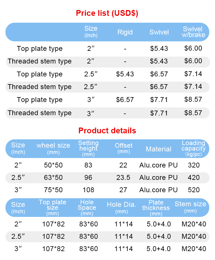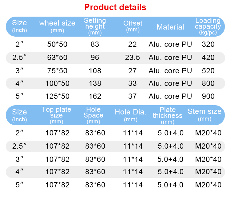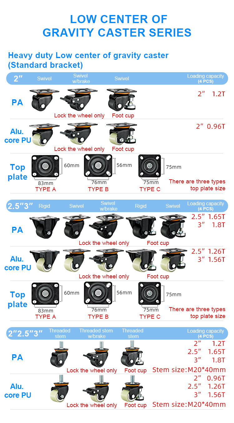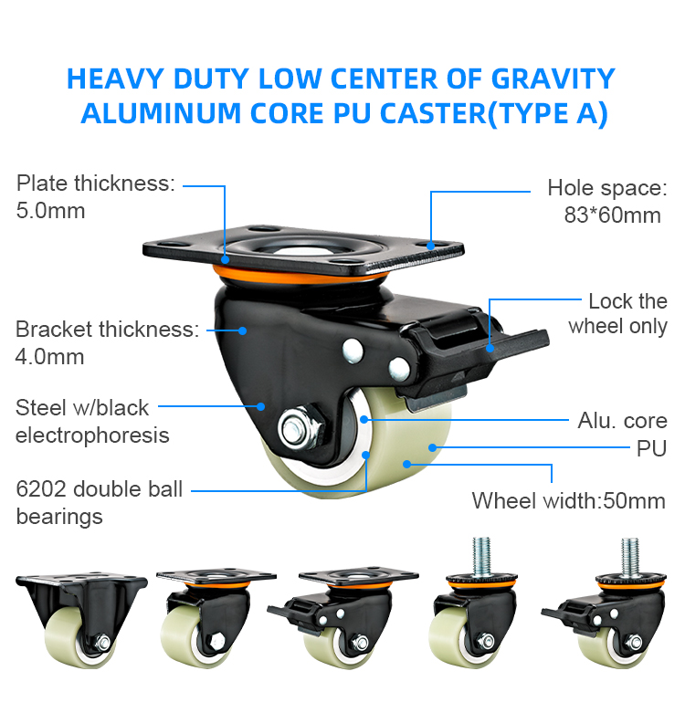 Heavy duty Low center of gravity Alu. core PU caster(Type A)