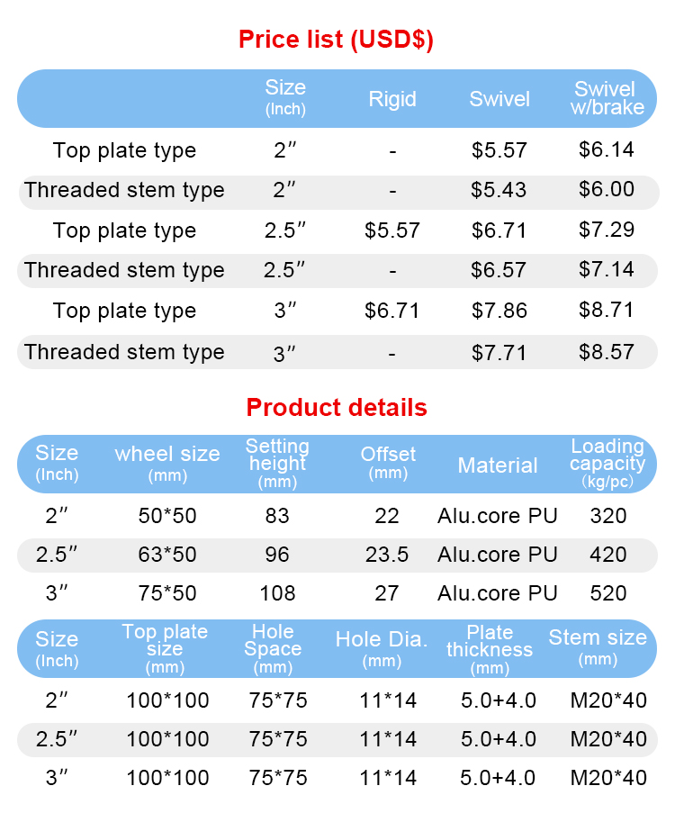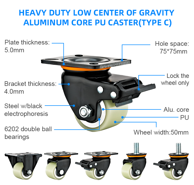 Heavy duty Low center of gravity Alu. core PU caster(Type C)