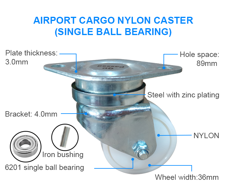Zinc-plated pressed steel housing with double steel ball raceway in swivel head