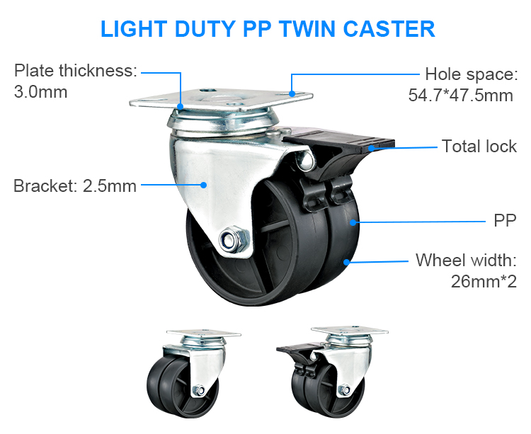 Black electrophoresis pressed steel housing with double steel ball raceway in swivel head