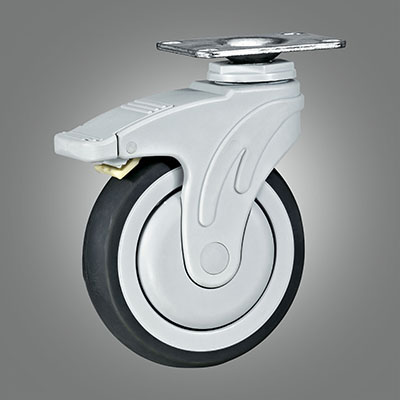 Medical Caster Series - Plastic Fork TPR (Flat) Top Plate Caster - Total Lock
