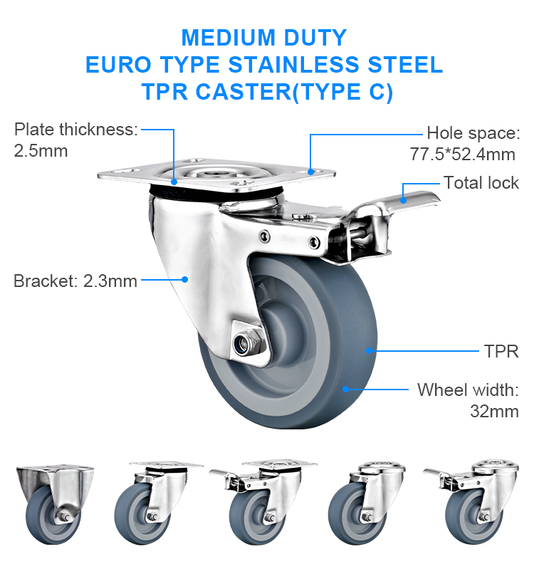 Medium duty euro type stainless steel TPR caster