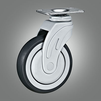 Medical Caster Series - Plastic Fork TPR (Flat) Top Plate Caster - Swivel