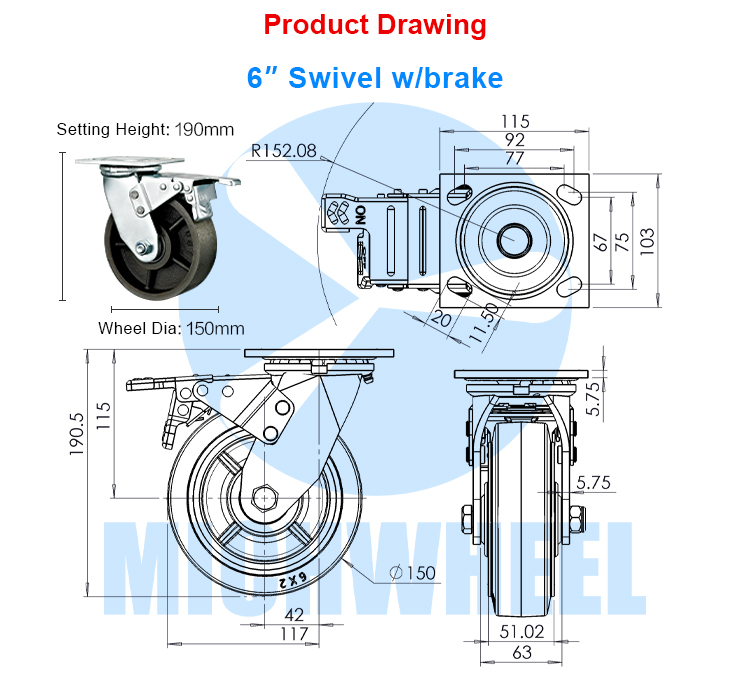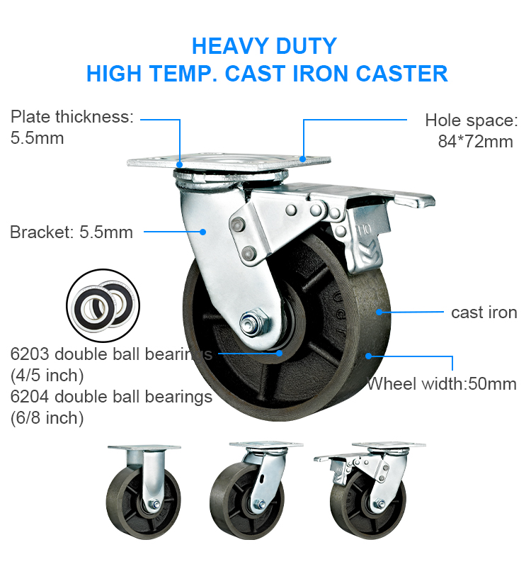 Zinc-plated pressed steel housing with double steel ball raceway in swivel head