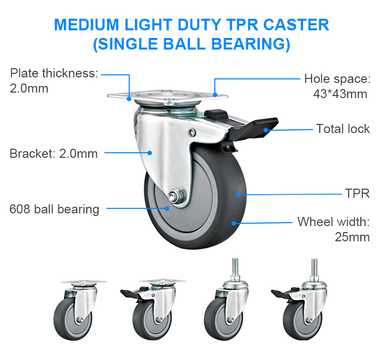 Black electrophoresis pressed steel housing with double steel ball raceway in swivel head