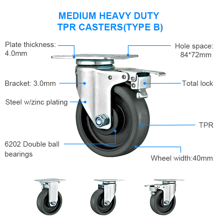 Zinc-plated pressed steel housing with double steel ball raceway in swivel head