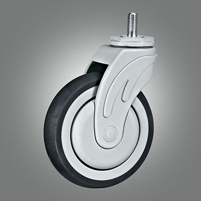 Medical Caster Series - Plastic Fork TPR (Flat) Threaded Stem Caster - Swivel