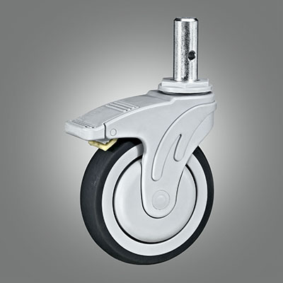 Medical Caster Series - Plastic Fork TPR (Flat) Solid Stem Caster - Total Lock