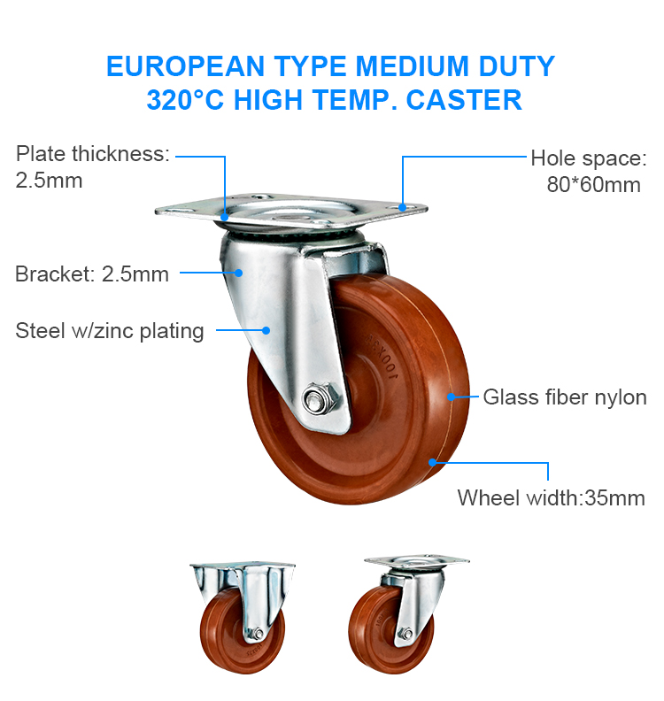 Zinc-plated pressed steel housing with double steel ball raceway in swivel head
